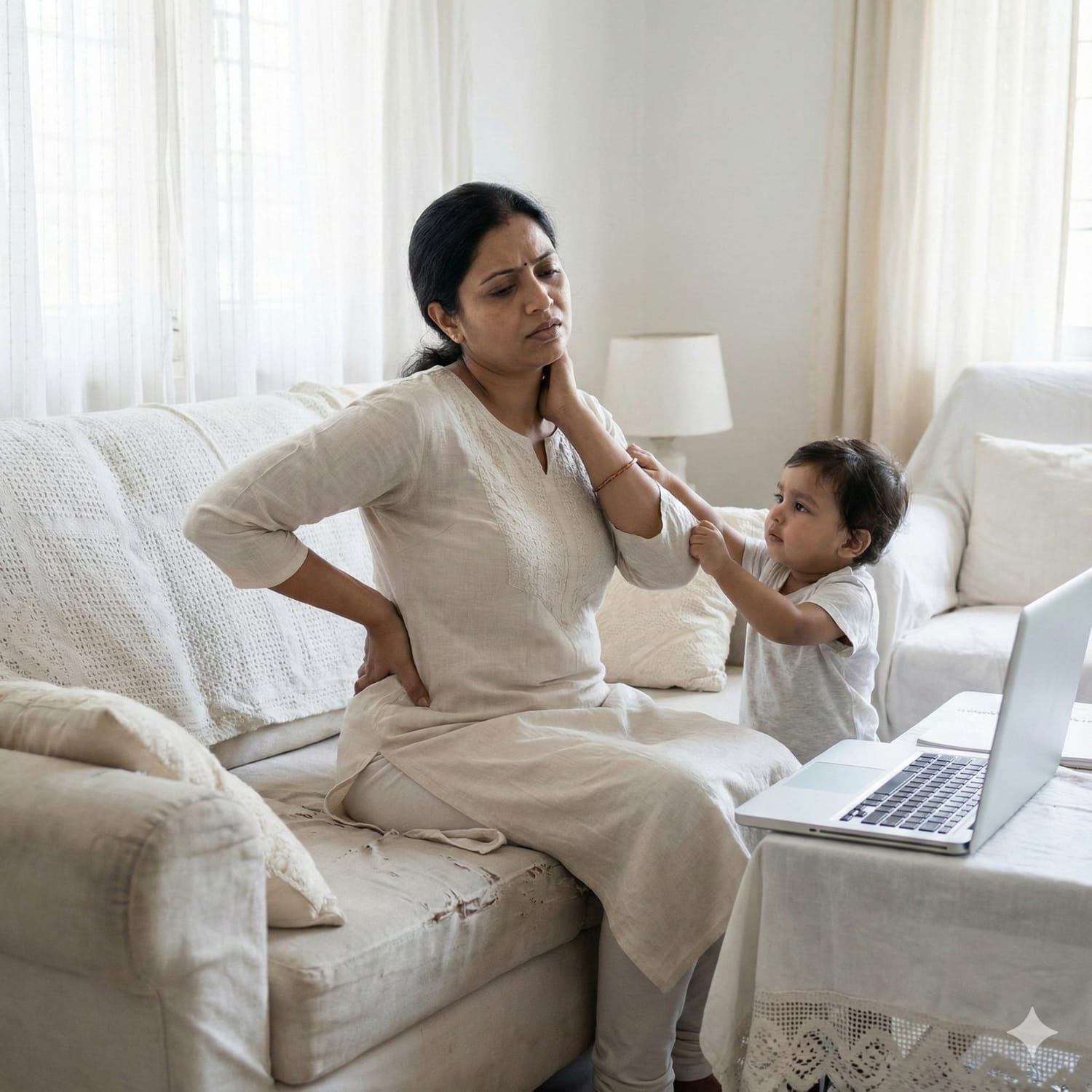 Moms who are drained by body pain, stiffness, and low stamina while managing kids and work.
